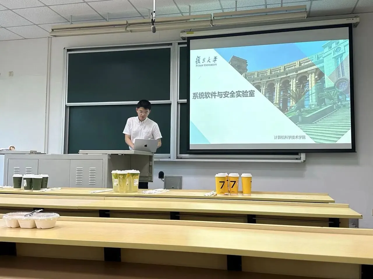 随后,洪赓老师做了实验室基本情况的介绍。他细数实验室的荣誉与成就和发展脉络,以及研究的三大方向:程序分析、操作系统、AI。他还介绍了实验室各个研究方向的概况,并且幽默诙谐地概览了之后工作的主要内容。他特别提到,要做有思维的人,会主动思考,而不仅仅当一个只会完成任务的工具人。在AI快速发展的今天,这一观点格外有启发性。